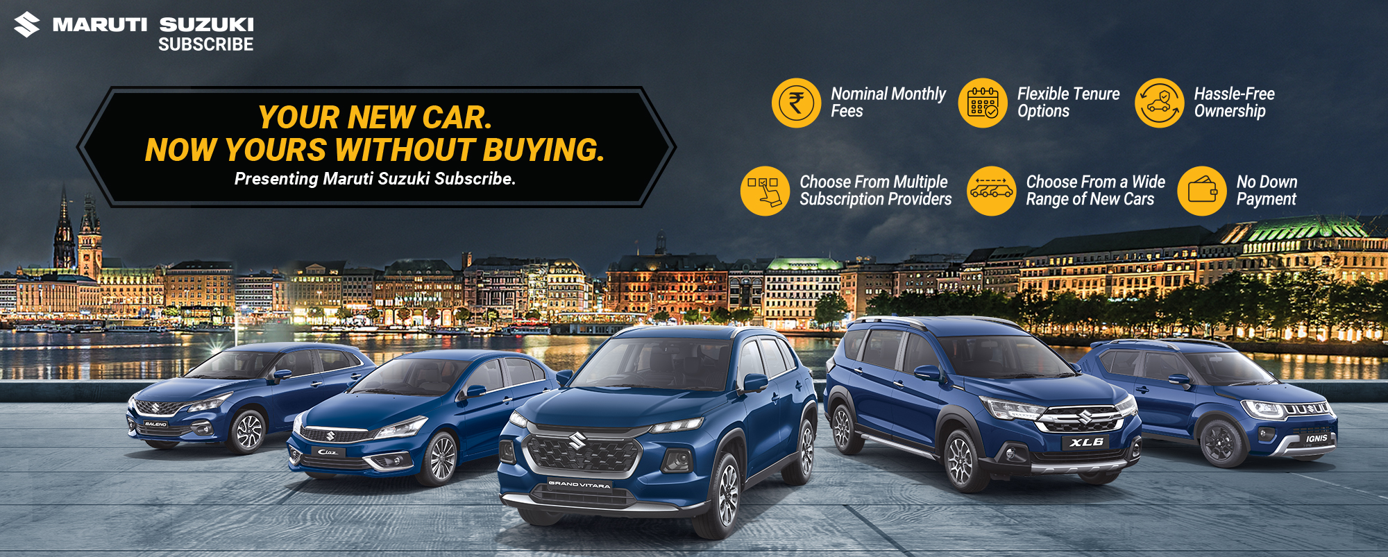 Located in Chennai, Vishnu offers a plethora of options of Nexa cars for Maruti Suzuki Subscribe. You can choose your desired Maruti Suzuki car and drive it home at nominal monthly fees for a variety of flexible tenure periods. Whether you prefer Hatchback, Sedan, SUV or even MUV you are sure to find it at Vishnu, with an easy Maruti Suzuki Subscribe plan.